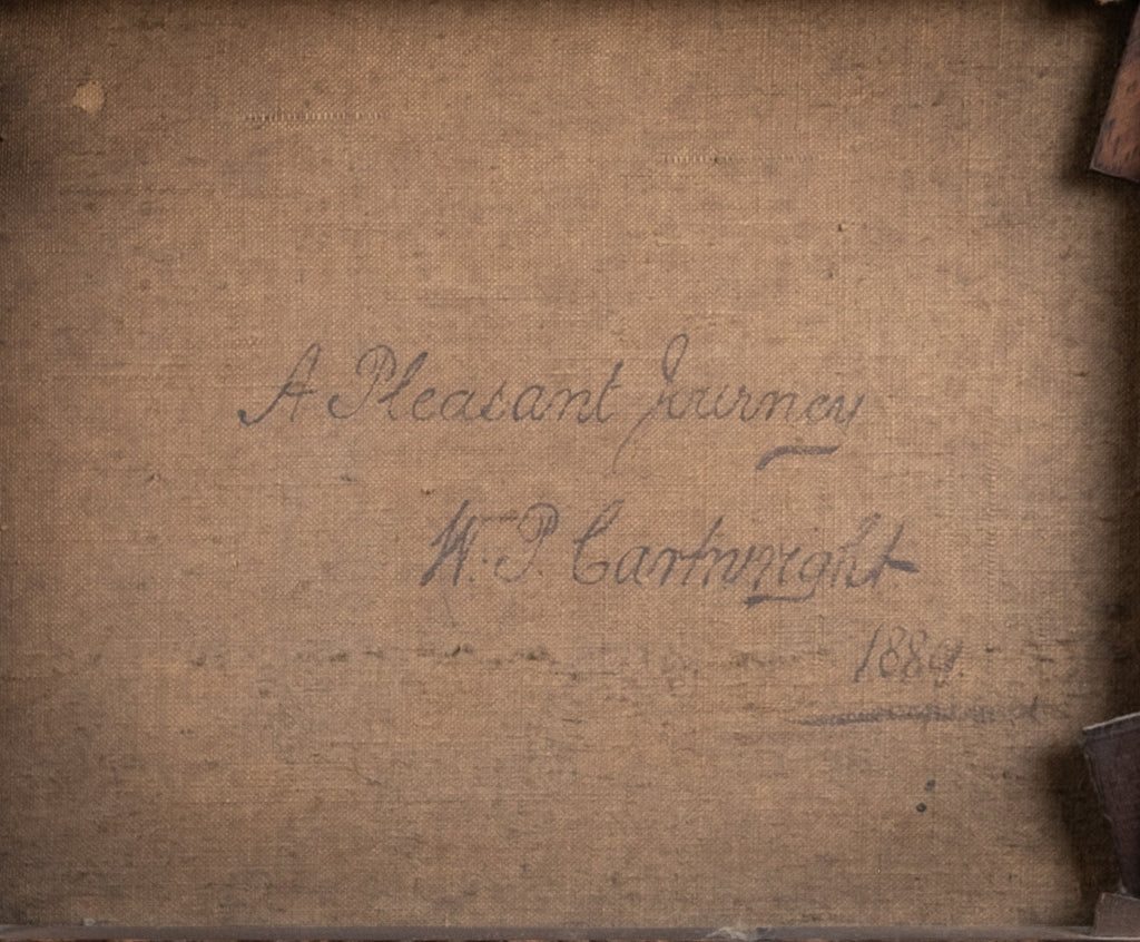 An oil on canvas titled 'A Pleasant Journey', signed and dated to the lower left and verso 'W. P. Cartwright, 1880'.